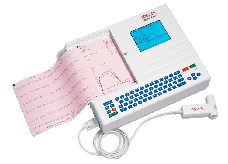 Электрокардиограф Shiller Cardiovit AT-2 plus — двенадцатиканальный электрокардиограф для ЭКГ покоя со встроенным термопринтером и дисплеем. С возможностью подключения спирометрического блока.