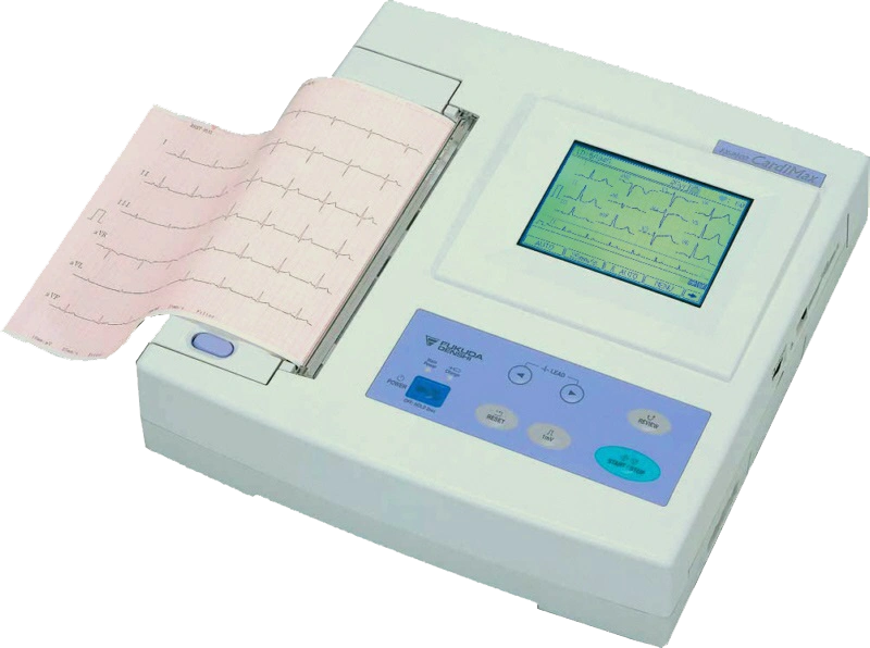 Двенадцатиканальный электрокардиограф CARDIMAX FX-7402, обеспечивает возможность записи ЭКГ 12-ти стандартных отведений в ручном и автоматическом режимах.