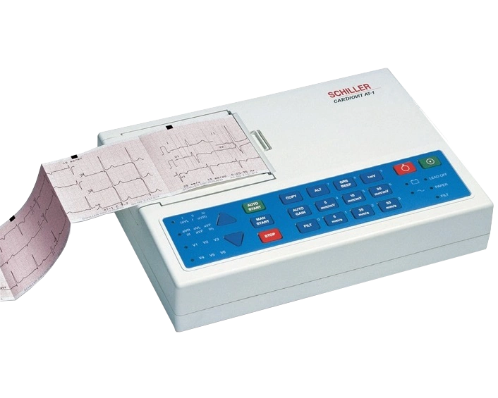Schiller Cardiovit AT‑1 — цифровой электрокардиограф, разработанный швейцарским производителем Schiller AG, известным на международном рынке медицинской техники. Аппарат предназначен для регистрации электрокардиограммы, проведения диагностики нарушений сердечного ритма и других сердечно-сосудистых патологий. Устройство активно используется в кабинетах функциональной диагностики, лабораторных отделениях, стационарах, кардиологических клиниках, а также на выездах скорой помощи и в условиях мобильных медицинских центров.