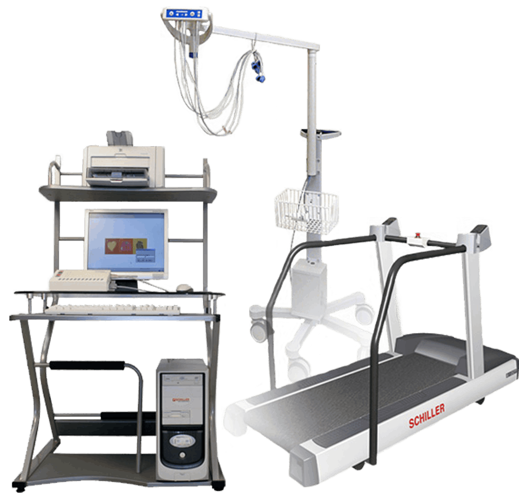 - CARDIOVIT AT– 104 PC / ПК (LCD монитор 19”, DVD-RW, принтер, Лицензионная ОС WINDOWS XP Prof)/ EXEC X2(программа нагрузочного тестирования)/EXEC plus (сохранение результатов нагрузочного теста в полном объеме)/ бегущая дорожка SCHILLER Intertrack (без измерения АД)/ Система вакуумной аппликации ЭКГ электродов с цифровой регулировкой вакуума и эргономичным дизайном /специальный ПК стол.