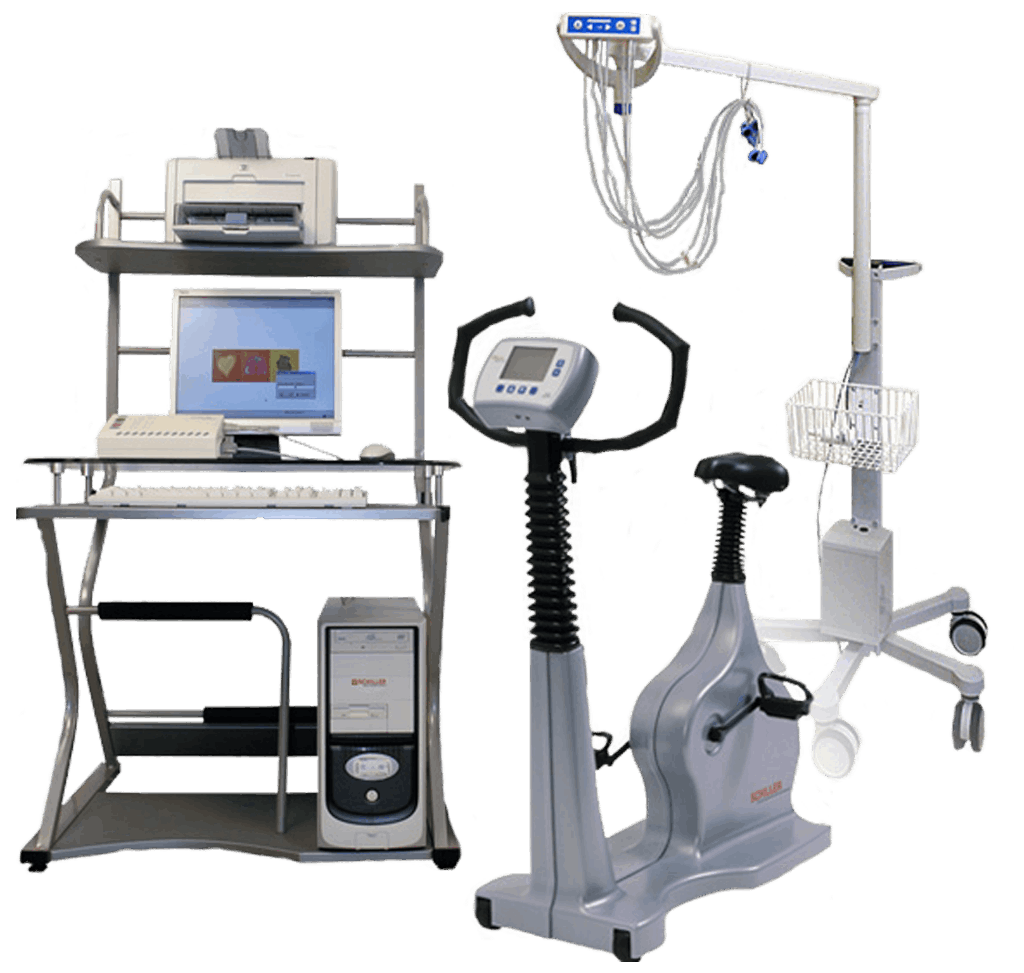 - CARDIOVIT AT– 104 PC / ПК (LCD монитор 19”, DVD-RW, принтер, Лицензионная ОС WINDOWS XP Prof)/ EXEC X2(программа нагрузочного тестирования)/EXEC plus (сохранение результатов нагрузочного теста в полном объеме)/ Велоэргометр ERG 911 BP (с измерением АД)/ Комплект стандартных принадлежностей для стресс-теста / специальный ПК стол.