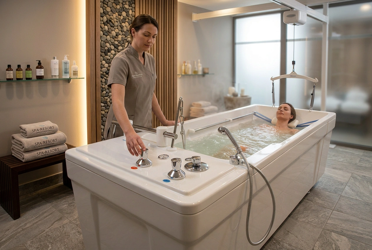 Комплекс ATLANTA является компактной реабилитационной установкой для проведения процедур подводного вытяжения шейного и пояснично-грудного отделов позвоночника по различным методикам, а также ручного подводного душа-массажа с давлением в шланге до 5 атм. Большой объем ванны и специальный подъемник обеспечивают комфортное размещение пациента при проведении курса лечения. Данный комплекс используется в лечебно-профилактических и санаторно-курортных учреждениях, специализирующихся на лечении широкого спектра заболеваний. Универсальность и многофункциональность комплекса АТЛАНТА позволяет решать проблемы при различных патологиях опорно-двигательного аппарата, периферической нервной системы, сердечно-сосудистых заболеваний, а также заболеваний других внутренних органов и систем. Компактность комплекса ATLANTA позволяет организовать многофункциональный гидротерапевтический кабинет на площади 20 м2.