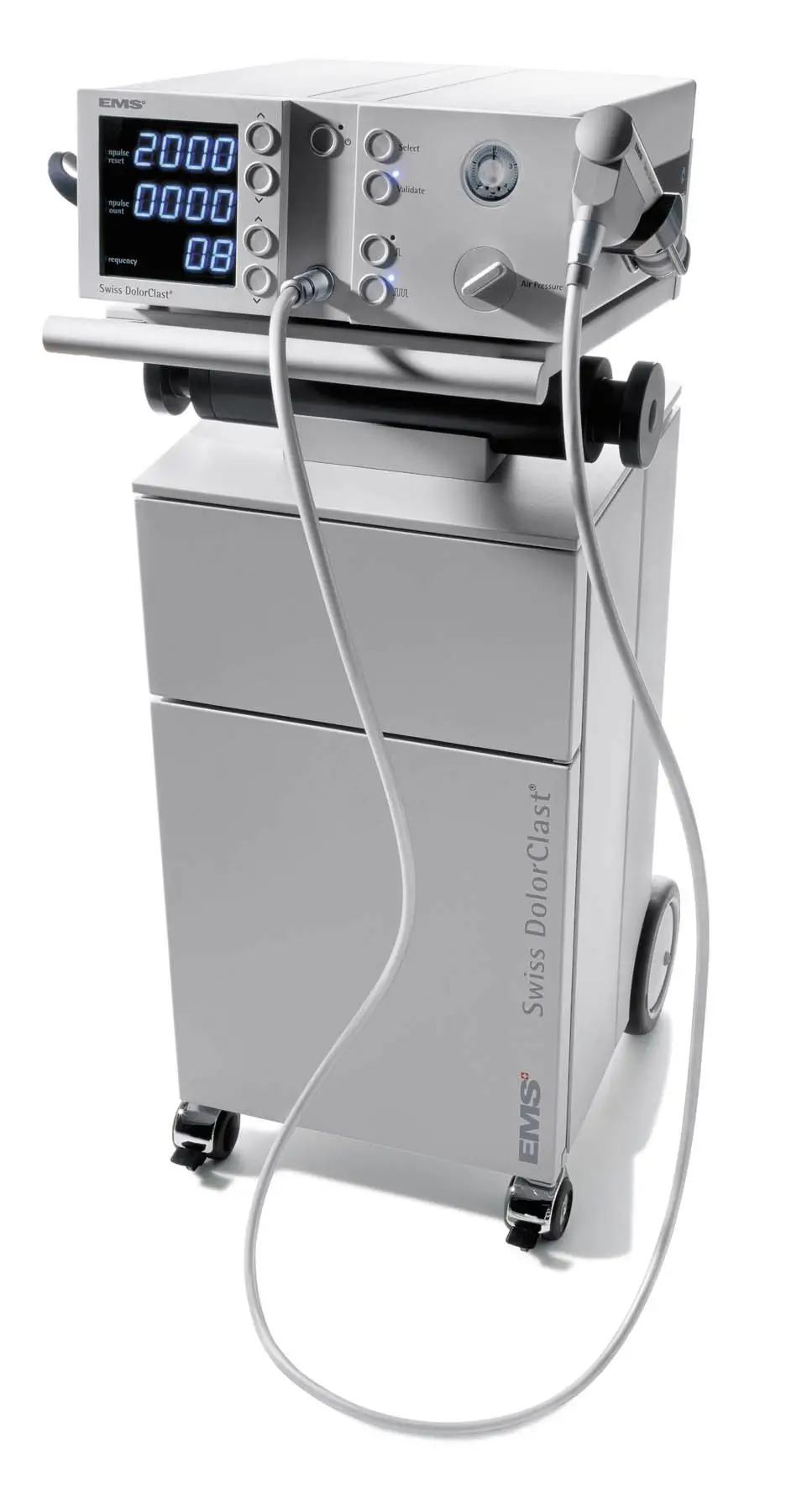 Swiss Dolorclast – инновационное оборудование экстракорпоральной ударно-волновой терапии. Его разработкой занимались лучшие швейцарские и немецкие ученые, за счет чего удалось достигнуть максимальной эффективности и надежности устройства. В ходе использования прибора на локальные области тела воздействуют вибрацией, которая позволяет снизить болевые ощущения, нормализовать обменные процессы, снять отеки. Аппарат EMS Swiss Dolorclast характеризуется:
