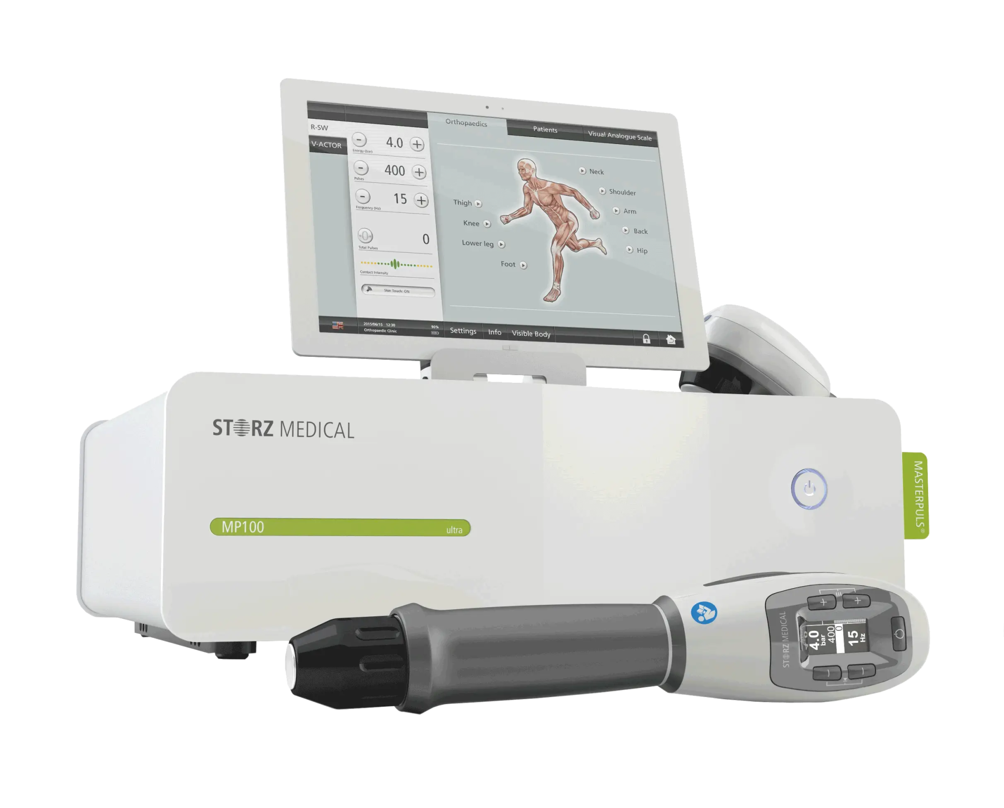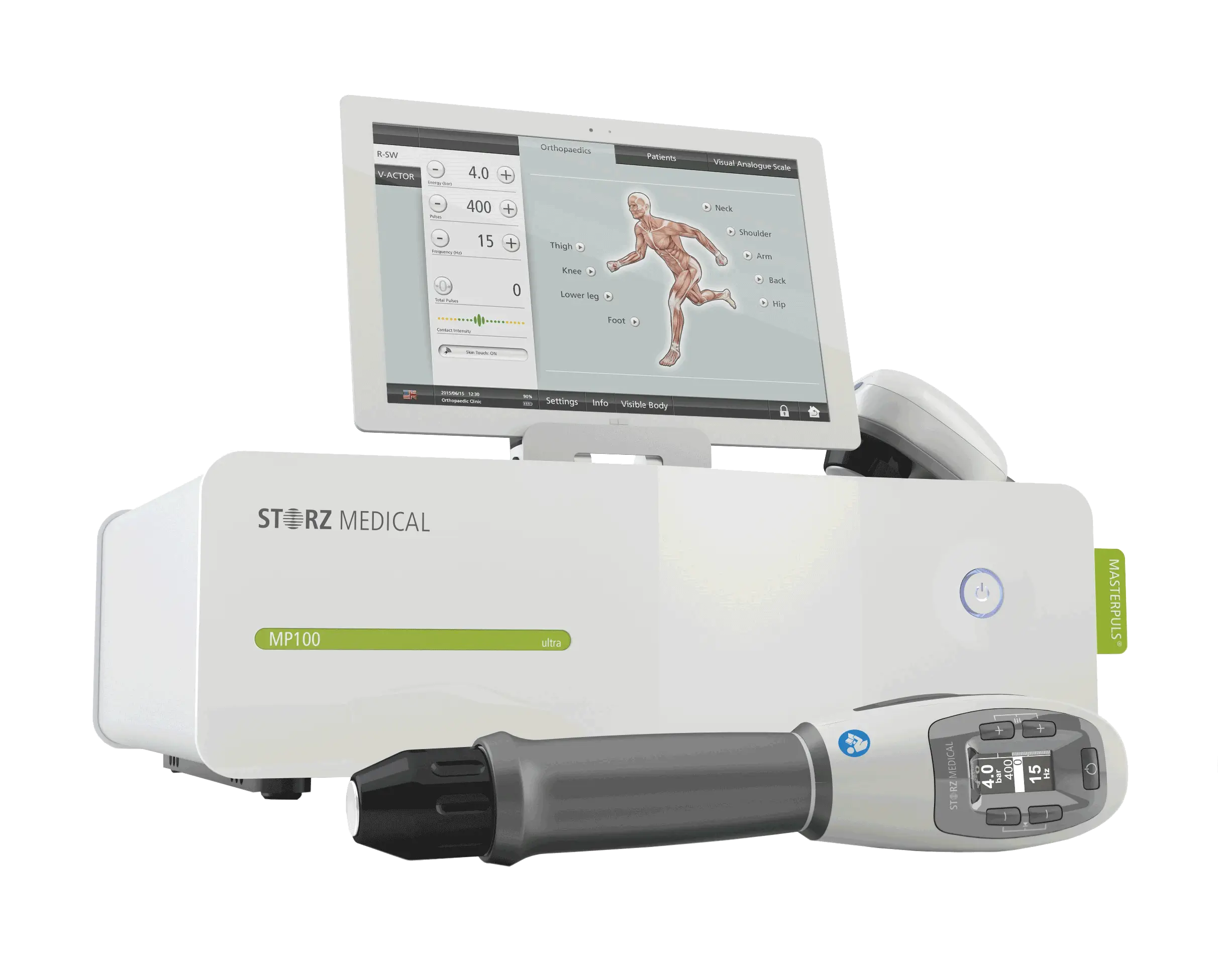 Storz Medical Masterpuls MP200 — медицинский аппарат нового поколения, разработанный в Швейцарии. Он используется для проведения радиальной и фокусированной ударно-волновой терапии в ортопедии, травматологии, спортивной медицине и физиотерапии. Прибор является оптимальным выбором для оснащения кабинета врача, медицинского центра или клиники благодаря сочетанию портативности, функциональности и качества сборки.