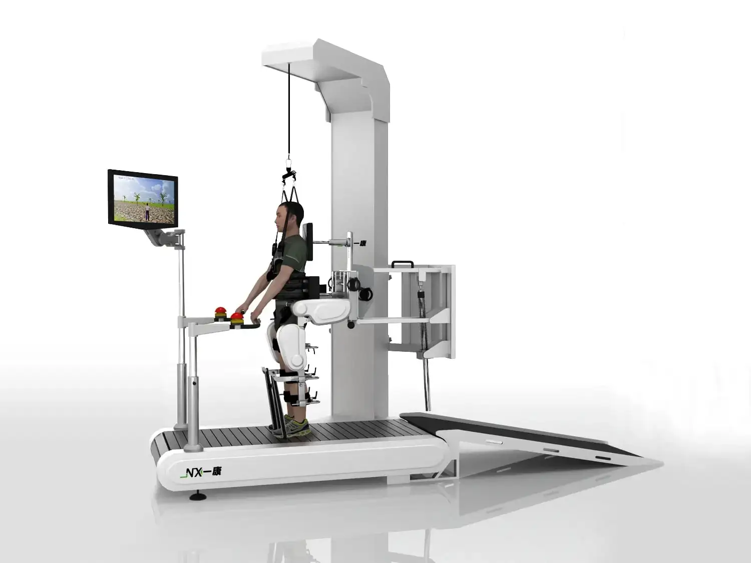 Роботизированные двигатели в ортезах обеспечивают плавность и точность движений, а датчики силы фиксируют взаимодействие пациента с тренажером. Система поддержки тела оснащена регулируемыми ремнями, которые обеспечивают комфорт и безопасность в начале и в процессе тренировки. Пациенты на инвалидных колясках могут легко попасть на тренажер по рампе, что упрощает подготовку к занятиям.